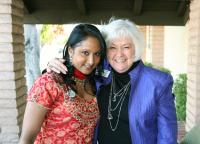 The Miss Fullerton 2009 team (Jessica Oh and Ryan Osborn) participate in the monthly chamber mixer meeting.